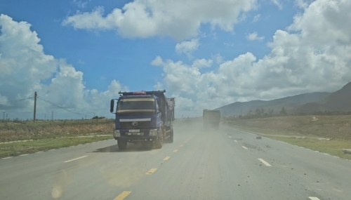 Đáng chú ý, có nhiều tuyến đường mới làm, chưa được bàn giao trong Khu kinh tế, cũng bị nhiều xe tải chở vật liệu chạy vào. Chưa kể trên các tuyến đường, dẫu các xe hầu hết được che bạt nhằm tránh vật liệu rơi vãi xuống đường, nhưng nhiều xe vẫn chở vật liệu cao hơn thành thùng xe, phóng xe chạy như bay trên đường, khiến vật liệu rơi vãi gây nguy hiểm cho người tham gia giao thông.