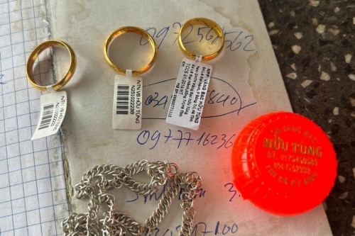 Bên trong túi gồm có 1 nhẫn vàng loại 1 chỉ, 2 nhẫn vàng loại 5 phân và 1 dây chuyền bạc, ước tính trị giá hơn 30 triệu đồng. Nhận thấy tài sản có giá trị lớn, bà Thái và bà Sửu đã nhanh chóng trình báo, bàn giao cho công an xã Cẩm Trung để tìm chủ sở hữu.