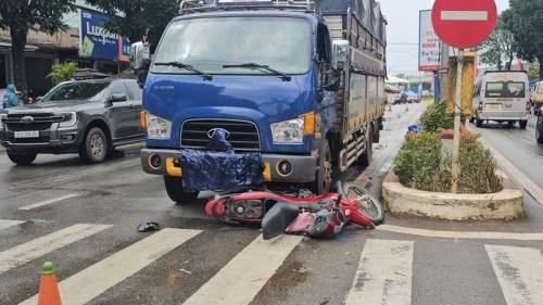 Khi đến đoạn qua tổ 5, phường Pleiku, tỉnh Gia Lai xe tải đã tông vào xe máy do ông Phan H.Đ. (SN 1955, trú phường Pleiku) điều khiển, chở theo cháu là Dương Ngọc B.N. (2015) lưu thông cùng chiều, phía trước chuyển hướng qua đường.