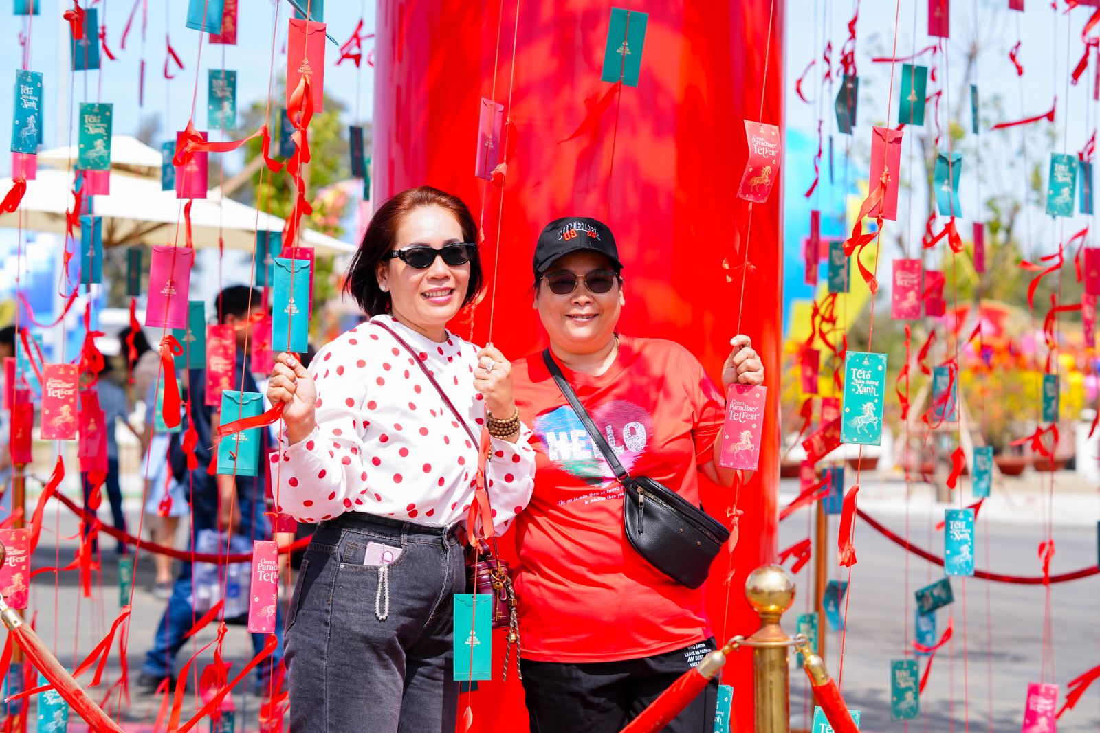 Tâm điểm lễ hội trong ngày đầu năm là cây lì xì “siêu to khổng lồ” với 2026 phong bao đỏ rực, tượng trưng cho 2026 điều ước may mắn. Du khách hào hứng hái lộc, mở phong bao với những phần quà như voucher ẩm thực, cây xanh hay đặc sản Tết, tạo thêm niềm vui bất ngờ trong khoảnh khắc đầu xuân.
