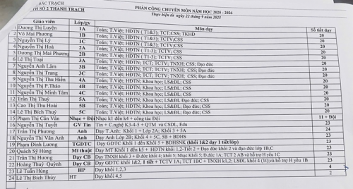 Danh sách phân công chuyên môn năm học của Trường thì việc giảng dạy của Hiệu trưởng và Phó Hiệu trưởng không có lịch cố định, không xác định rõ môn học, tiết học, không xây dựng kế hoạch dạy học và bài soạn theo quy định... |