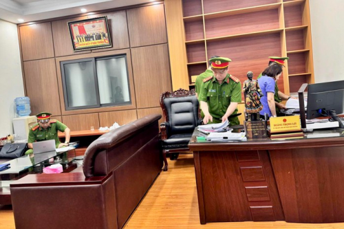 Cơ quan CSĐT Công an tỉnh Phú Thọ khám xét nơi làm việc của Hoàng Trọng Lợi. Ảnh: CACC |