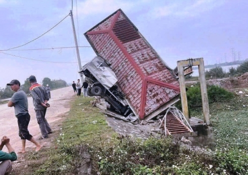 Trước đó, khoảng 15h ngày 4/2, xe tải tập lái do một học viên điều khiển, có thầy giáo hướng dẫn đi cùng, lưu thông hướng từ xã Khánh Trung lên xã Yên Khánh. Khi đến địa điểm trên, xe bất ngờ mất lái, tông vào thành cầu cống ven đường rồi rơi xuống dưới. Cú va chạm mạnh khiến một đoạn thành cầu đổ sập đè lên ô tô; phần đầu xe tải biến dạng nghiêm trọng.