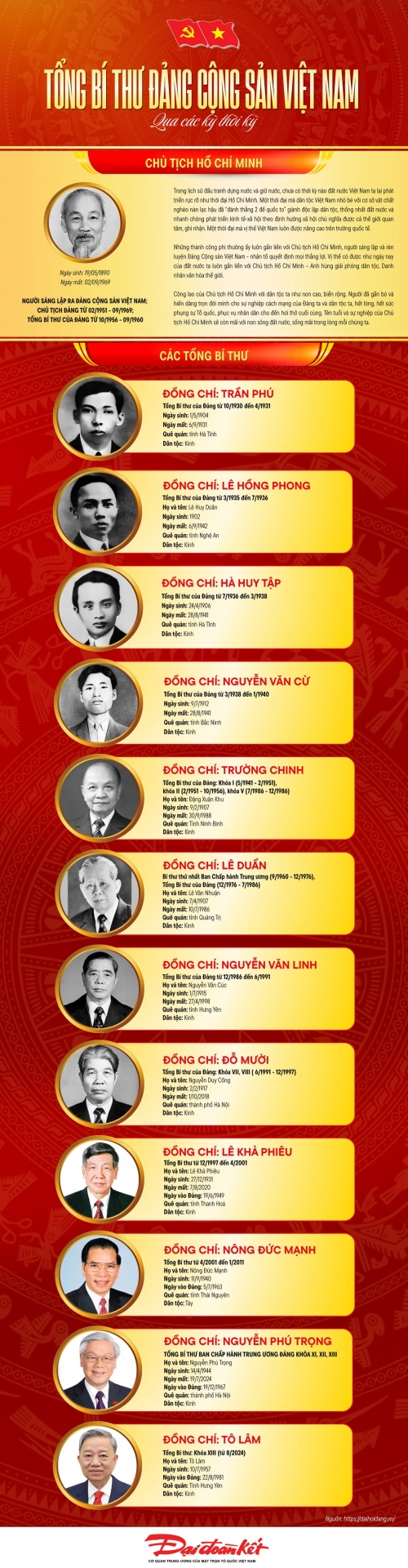 Infographic: Tổng Bí thư Ban Chấp hành Trung ương Đảng Cộng sản Việt Nam qua các thời kỳ