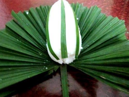 Cơm nắm lá cọ: Đây là món ăn quen thuộc của người dân vùng Tây Bắc mỗi mùa cọ đến. Lá cọ đem về hơ qua lửa cho mềm, lau sạch rồi nắm với cơm được nấu bằng những loại gạo mới thu hoạch, vừa thơm, vừa dẻo. Từng nắm cơm với những viền sọc được tạo hình từ lá cọ đượm thơm mùi gạo quê quyện với hương của lá cọ, chấm với muối vừng lạc hay sườn lợn rang muối mới thấy hết được vị ngon, ngai ngái của lá cọ không nơi nào có được của món ăn dân dã này. Ảnh: Internet |