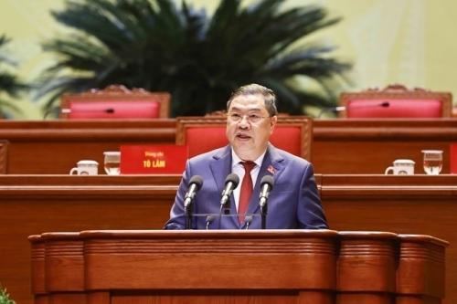 Ủy viên Bộ Chính trị, Bí thư Trung ương Đảng, Trưởng Ban Tổ chức Trung ương Lê Minh Hưng báo cáo tiếp thu ý kiến các đoàn đại biểu góp ý vào Quy chế làm việc của Đại hội và toàn văn dự thảo Quy chế làm việc đã tiếp thu ý kiến các đoàn đại biểu. Ảnh: TTXVN |