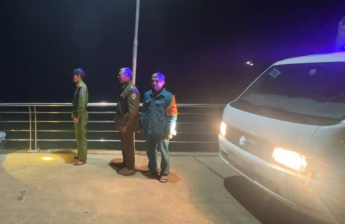 Công an xã cùng các lực lượng chức năng địa phương thay phiên canh gác xuyên đên bên bờ sông trong thời gian qua. |