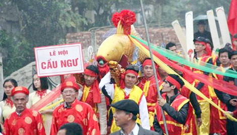 Hình ảnh tại lễ rước cá Sủ vàng. |