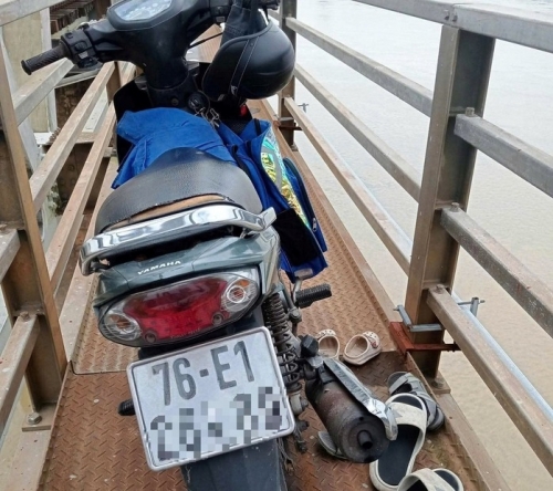 Trước đó, khoảng 10 giờ 30 phút ngày 26-11, người dân phát hiện một người đàn ông điều khiển xe máy biển số 76E1-264… chở 2 cháu nhỏ đi học về, lưu thông qua cầu đường sắt Trường Xuân – nối giữa đôi bờ sông Trà Khúc.