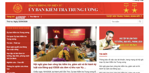 Giao diện Trang thông tin điện tử của Ủy ban Kiểm tra Trung ương (Ảnh chụp màn hình). |