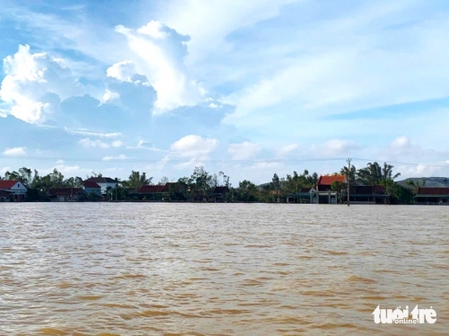 Làng mạc ở xã Đức Quang chìm trong nước lũ vào chiều ngày 1-10 - Ảnh: LÊ MINH |