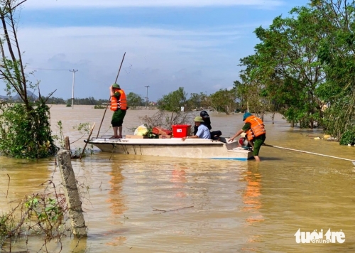 Hai ngày nay chính quyền địa phương, lực lượng công an, quân sự xã phải bố trí xuồng máy, ca nô để vận chuyển lương thực chủ yếu là mì tôm, bánh, nước ngọt để tiếp tế cho người dân. Do phương tiện nhỏ, mỗi lần vận chuyển không được nhiều hàng hóa nên các phương tiện phải hoạt động liên tục để kịp thời cung cấp cho người dân.