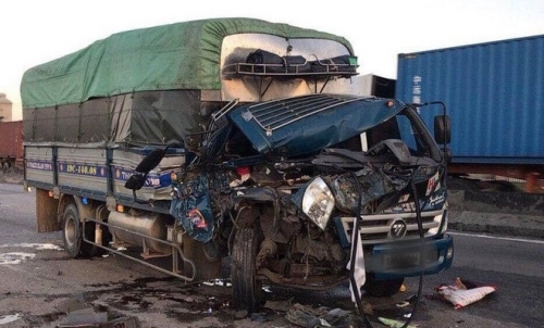 Đến địa điểm trên, ôtô tải đâm vào đuôi xe container biển kiểm soát 15C do Phạm Quốc Việt (35 tuổi, trú huyện Kiến An, TP Hải Phòng) cầm lái, đang đỗ cùng chiều phía trước.