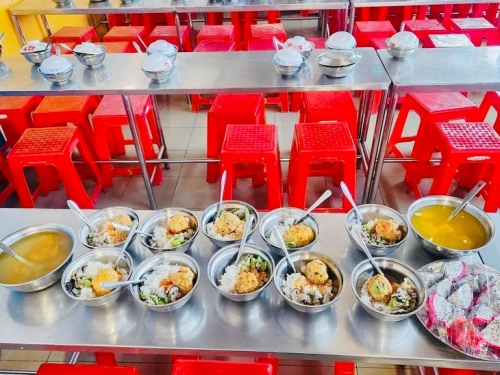 Thầy Hiếu nói thêm: "Suất ăn có giá 40.000 đồng/em, có cơm, thức ăn mặn, đồ xào. Và 40.000 đồng này bao gồm bữa ăn trưa và ăn xế; thêm món tráng miệng. Nhà trường tuân thủ thực đơn gợi ý từ các bữa ăn trường học đảm bảo; đúng trọng lượng, đủ chất".