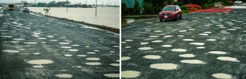 "Chúng tôi đã huy động công nhân và phương tiện ra hiện trường để sửa chữa, song do mưa lớn kéo dài nên toàn bộ lớp mặt vừa thi công bị hư hỏng, xuất hiện nhiều ổ gà, ổ voi. Thời tiết bất lợi khiến đơn vị chưa thể tiếp tục xử lý, thiệt hại cũng rất lớn vì khi nắng ráo phải làm lại toàn bộ các công đoạn từ đầu”, ông Hà Đức Nhanh nói. |
