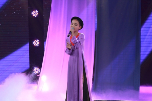 Bước ra sân khấu trình diễn ca khúc Giận mà thương, ngay từ những câu hát đầu tiên cất lên, cô bé lập tức nhận được tràng pháo tay nhiệt liệt từ khán giả.