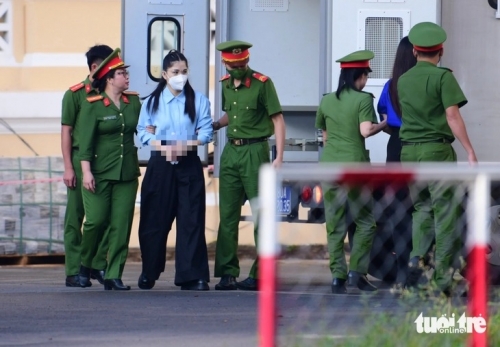 Bị cáo Nguyễn Thúc Thùy Tiên (hoa hậu Thùy Tiên) được dẫn giải đến tòa - Ảnh: QUANG ĐỊNH |