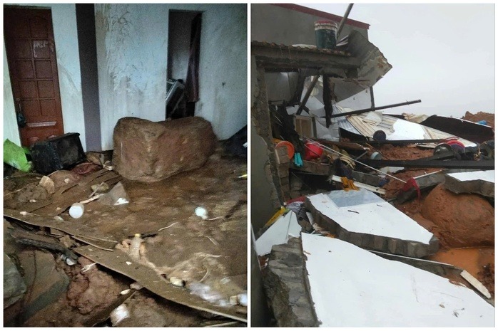Theo lãnh đạo UBND xã Cẩm Trung, vụ sạt lở khiến 1 nhà dân bị vùi lấp một nửa, nhiều công trình phụ, ao cá và trang trại chăn nuôi bị hư hại.