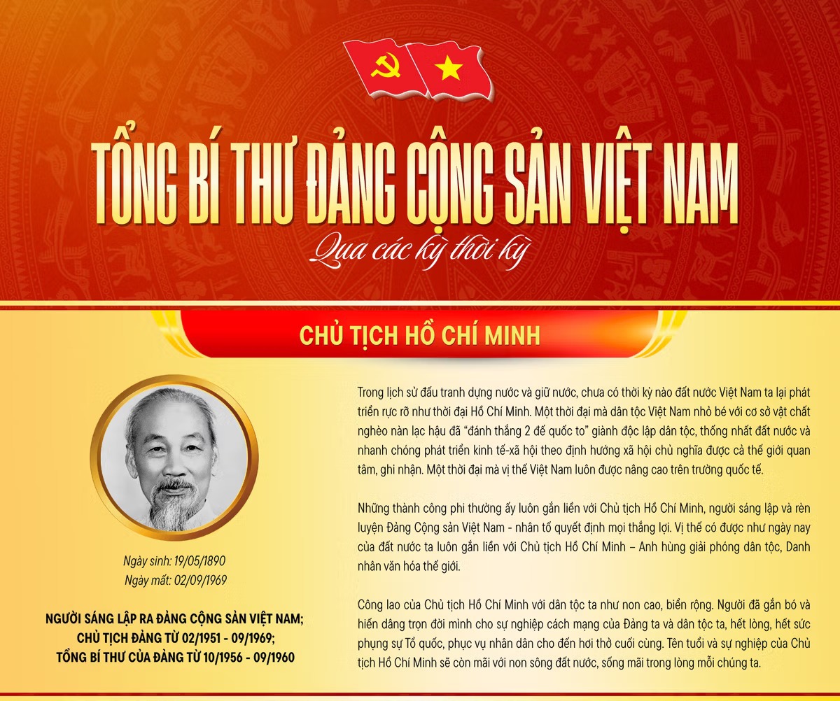 Infographic: Tổng Bí thư Ban Chấp hành Trung ương Đảng Cộng sản Việt Nam qua các thời kỳ