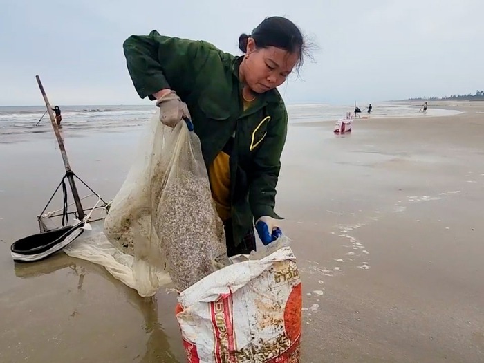 Hàng trăm người dân Hà Tĩnh ra bờ biển cào ốc tép, kiếm tiền triệu đầu năm