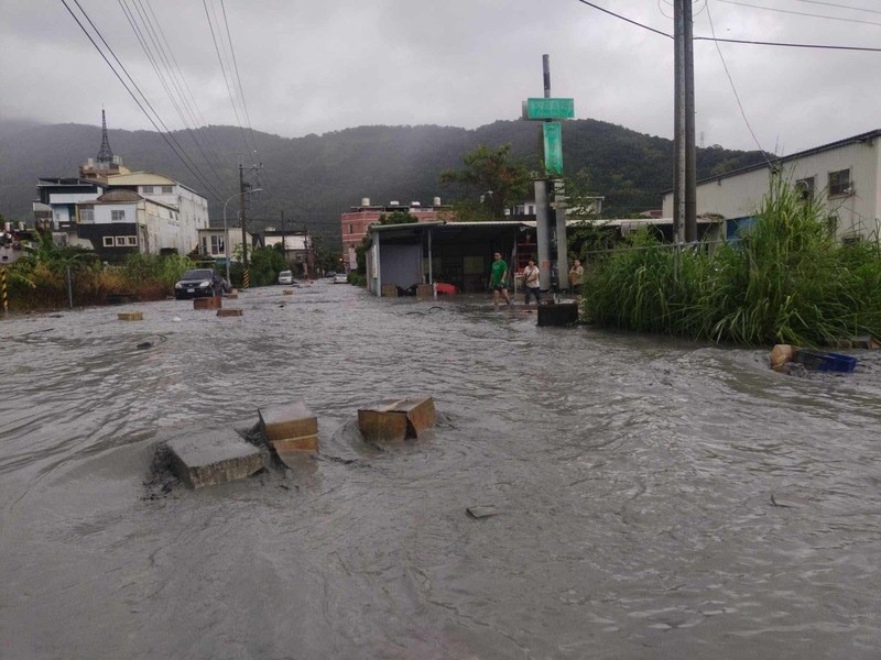 Một hồ nước vỡ bờ làm gãy cả cầu và ngập lụt một ngôi làng ở Hoa Liên, Đài Loan - Trung Quốc hôm 23-9, khi siêu bão Ragasa đang hướng tới.