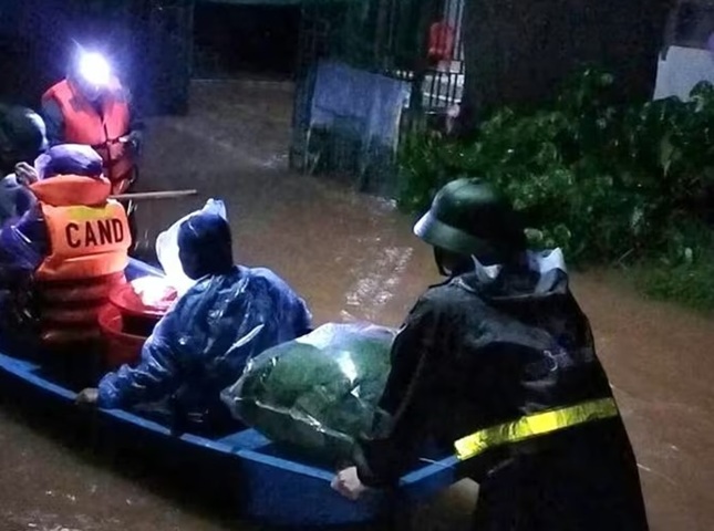 Nước lũ lên nhanh, gần 3.000 hộ dân ở xã Cẩm Duệ, tỉnh Hà Tĩnh bị ngập sâu, nhiều nơi nước gần chạm mái nhà.