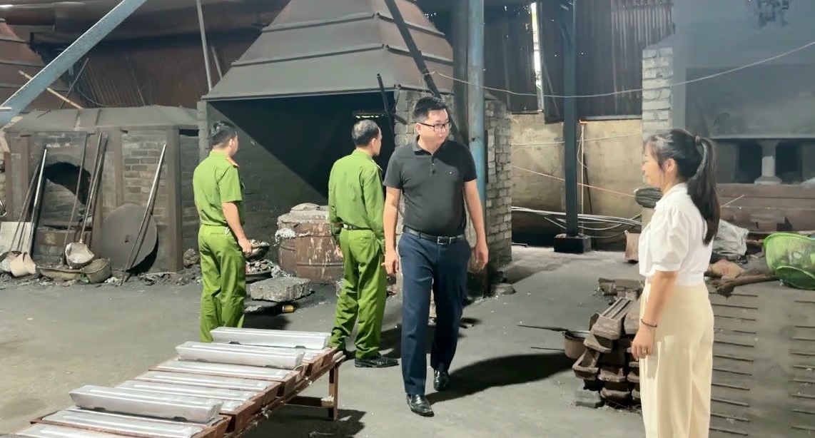 Công an, Phòng Kinh tế hạ tầng và đô thị phường Bắc Hồng Lĩnh (Hà Tĩnh) đã trực tiếp kiểm tra việc chấp hành pháp luật về sử dụng đất và công tác bảo vệ môi trường tại xưởng tái chế nhôm của Công ty TNHH Aluminium Thuận Phát.