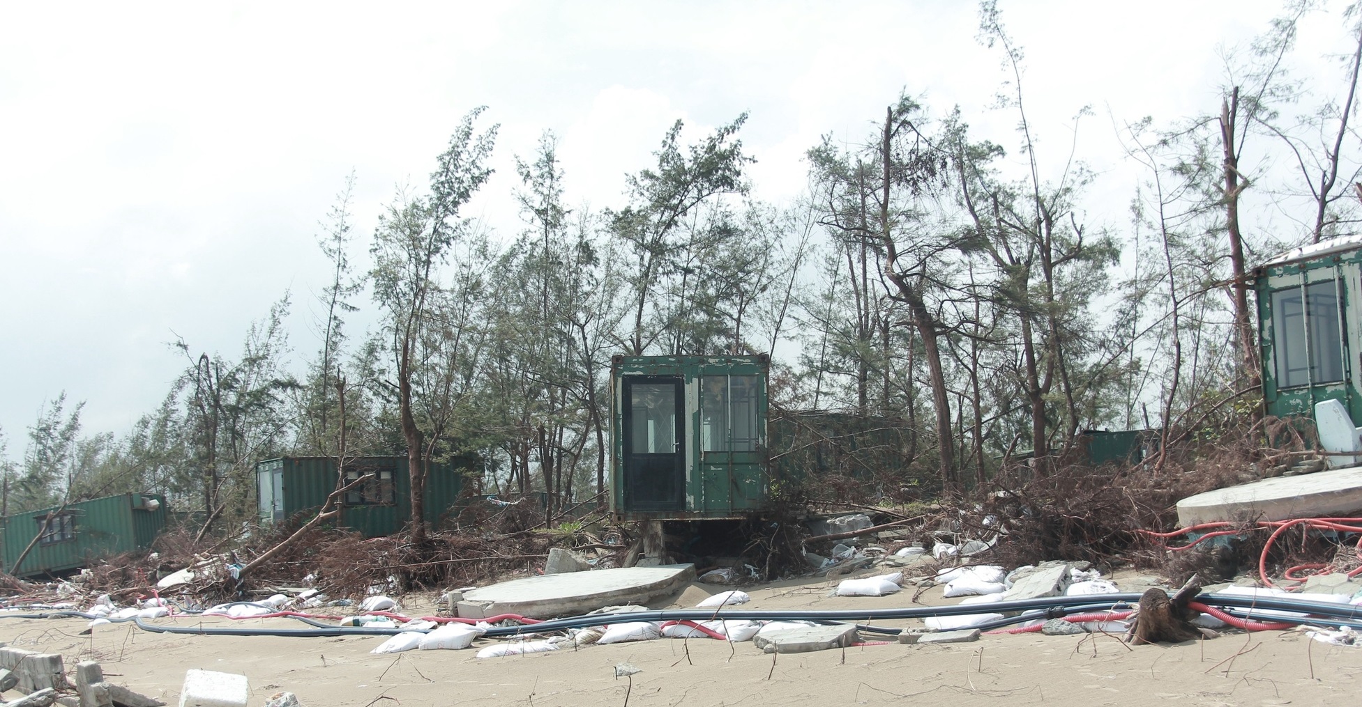 Quần thể khu nghỉ dưỡng được cải tạo, chế tác từ container cũ tại ven biển Hà Tĩnh đã bị gió giật, sóng biển đánh sập, để lại cảnh tượng tan hoang.
