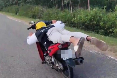Trước đó, trên mạng xã hội có lan truyền một đoạn clip ghi lại hình ảnh một thanh niên nằm dài trên xe máy BKS 81H1-220... điều khiển phương tiện chạy với tốc độ cao trên đoạn đường Đông Trường Sơn thuộc địa bàn xã Tơ Tung.