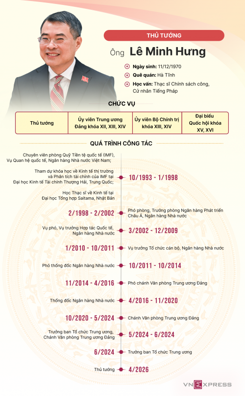 Tác giả: Tâm Thảo - Vũ TuânNguồn tin: Báo VnExpress Từ khóa: Thủ tướng Lê Minh Hưng , Tiểu sử Thủ tướng Lê Minh Hưng