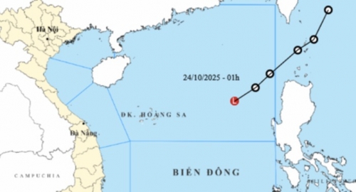 Theo Trung tâm Dự báo khí tượng thủy văn quốc gia, hồi 1 giờ ngày 24-10, vị trí trung tâm vùng áp thấp ở vào khoảng 17,4 độ Vĩ Bắc; 117,5 độ Kinh Đông. Sức gió mạnh nhất ở trung tâm vùng áp thấp giảm xuống dưới cấp 6 (dưới 39 km/giờ).