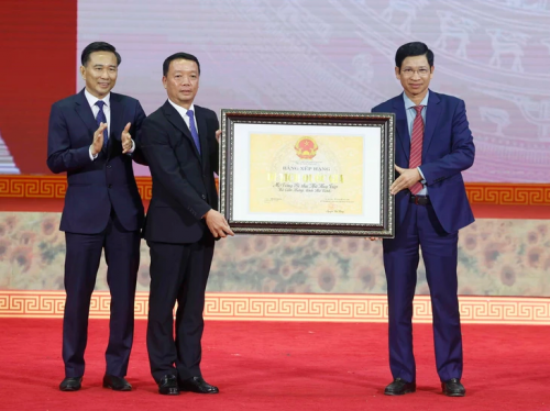 Lãnh đạo Bộ Văn hóa, Thể thao và Du lịch trao bằng xếp hạng Di tích lịch sử cấp quốc gia đối với Khu mộ Tổng Bí thư Hà Huy Tập - Ảnh: TTXVN |