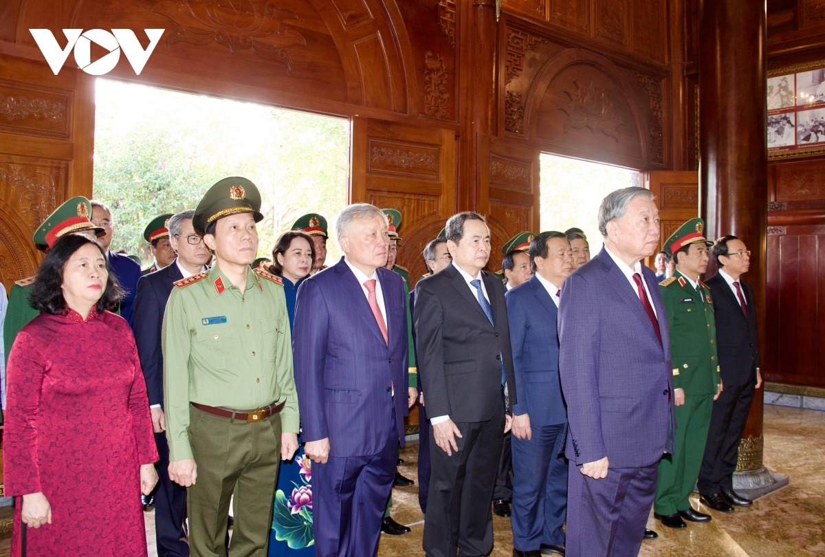 Trong không khí trang nghiêm, Tổng Bí thư cùng đoàn công tác và các đại biểu đã bày tỏ lòng thành kính, tưởng nhớ và tri ân đối với công lao to lớn của Chủ tịch Hồ Chí Minh vĩ đại và các anh hùng liệt sĩ. |