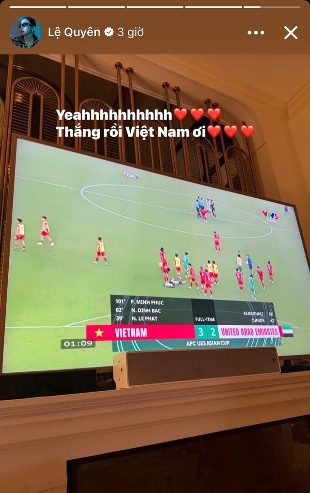 Bên cạnh đó, loạt nghệ sĩ như Lệ Quyên, Soobin, Tự Long, Bùi Công Nam hay Võ Cảnh đều đồng loạt chia sẻ cảm xúc tự hào, gửi lời chúc mừng và động viên tinh thần đến U23 Việt Nam. Dòng cảm xúc chung của dàn sao là sự ngưỡng mộ trước bản lĩnh, ý chí và tinh thần không bỏ cuộc của các cầu thủ trẻ.