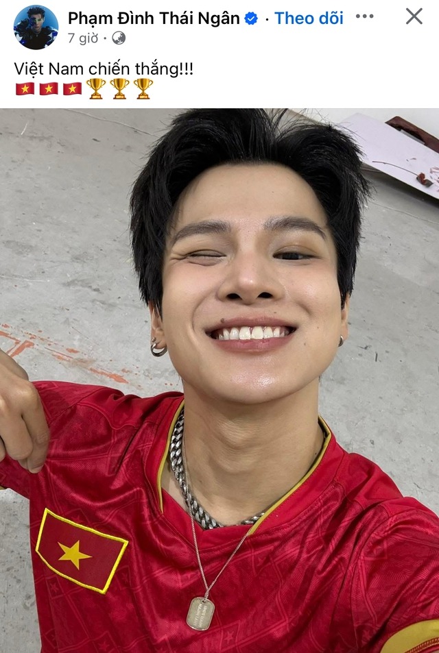 Phạm Đình Thái Ngân cũng hoà vào màn ăn mừng rần rần trên MXH (ảnh: FBNV) |