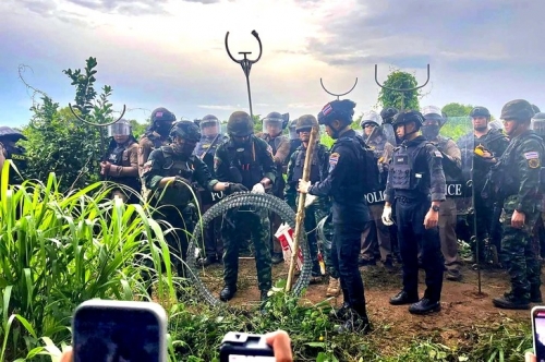 Quân đội Thái Lan dựng hàng rào kẽm gai tại tỉnh biên giới Banteay Meanchey ngày 17-9 - Ảnh: AKP/AFP