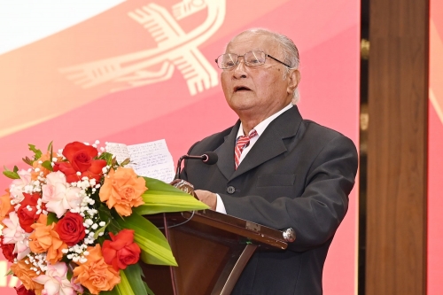 Nguyên Phó Trưởng đoàn ĐBQH tỉnh Khoá VII Lê Văn Đạc phát biểu tại cuộc gặp mặt kỷ niệm 80 năm Ngày Tổng tuyển cử đầu tiên bầu Quốc hội Việt Nam và bầu cử HĐND các cấp trên địa bàn tỉnh Hà Tĩnh |
