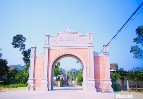 Cổng làng Lạc Đình thay áo mới đón chào thời kỳ mới - thời của chính quyền địa phương 2 cấp. Ảnh: Quốc Hoàn. |