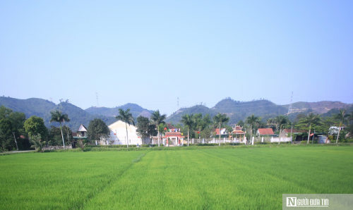 Núi đồi - làng quê - đồng lúa hoà quện vào trong sắc trời xanh biếc. Ảnh: Quốc Hoàn. |