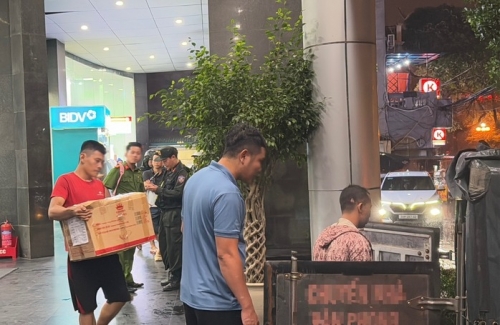 Theo ghi nhận của phóng viên Báo Người Lao Động, tối cùng ngày, dưới sự giám sát của lực lượng công an, nhiều người đã đưa hàng chục thùng carton xuống sảnh tầng 1 của tòa nhà. Sau đó, khoảng 19 giờ 35 phút cùng ngày, cảnh sát đã chuyển các thùng carton này ra xe tải để đưa về trụ sở công an.