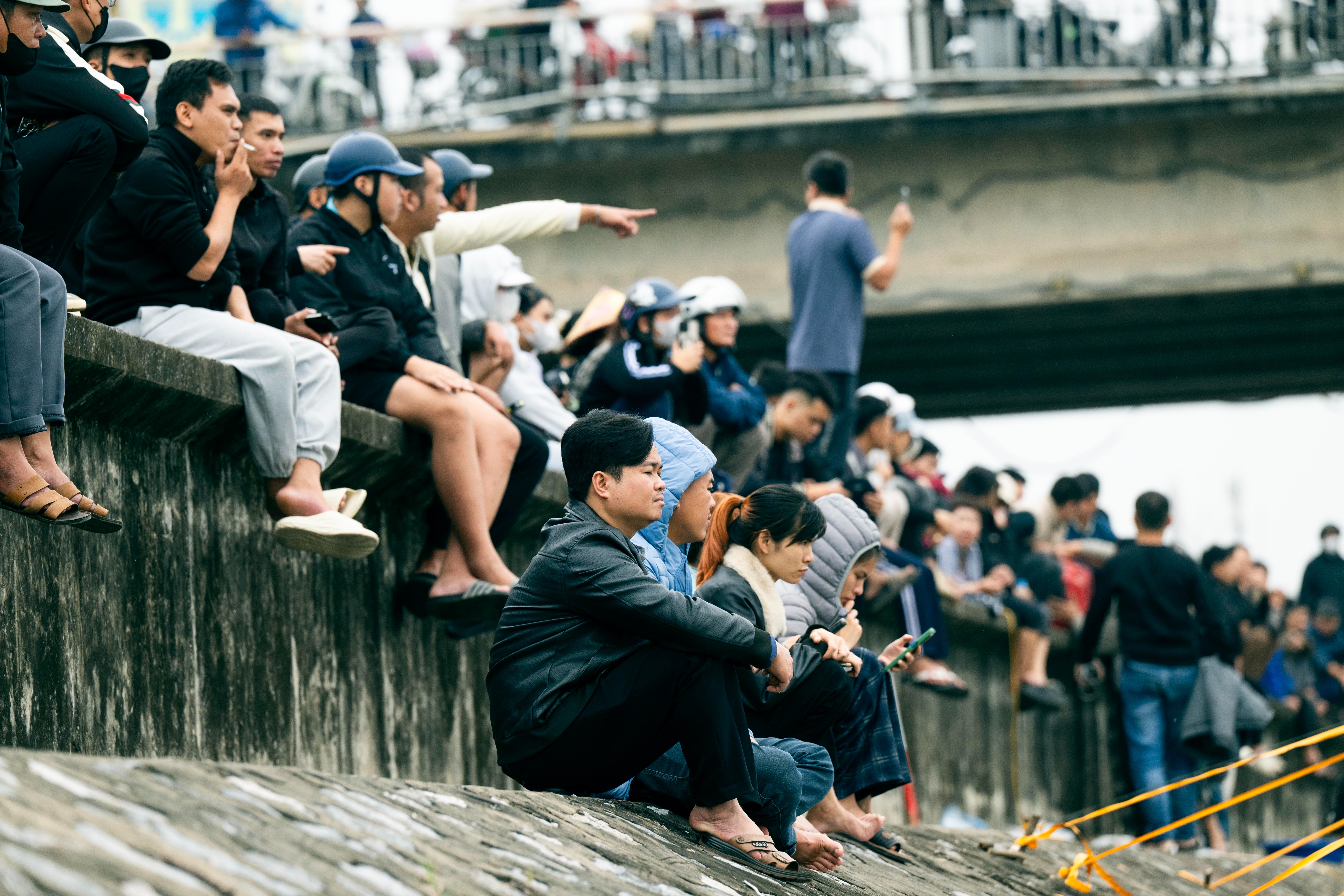 Nhiều người dân cũng đứng bên sông chờ đợi kết quả tìm kiếm |