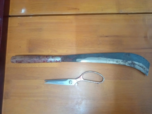 Lực lượng Công an thu giữ các loại dao, kéo mà các đối tượng dùng để giải quyết mưu thuẫn. |