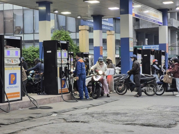 Giá xăng dầu được điều chỉnh hai phiên liên tiếp. Trong ảnh người dân đi đổ xăng tại một cửa hàng ở Hà Nội vào chiều 11-3 - Ảnh: NGỌC AN |