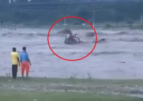 Giữa cảnh hoang tàn ở Dehradun, Uttarakhand, Ấn Độ, sau trận mưa lớn hôm 16/9, một đoạn video được chia sẻ rộng rãi trên mạng xã hội cho thấy cảnh chiếc xe đầu kéo bị nước lũ cuốn trôi.